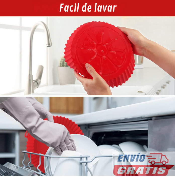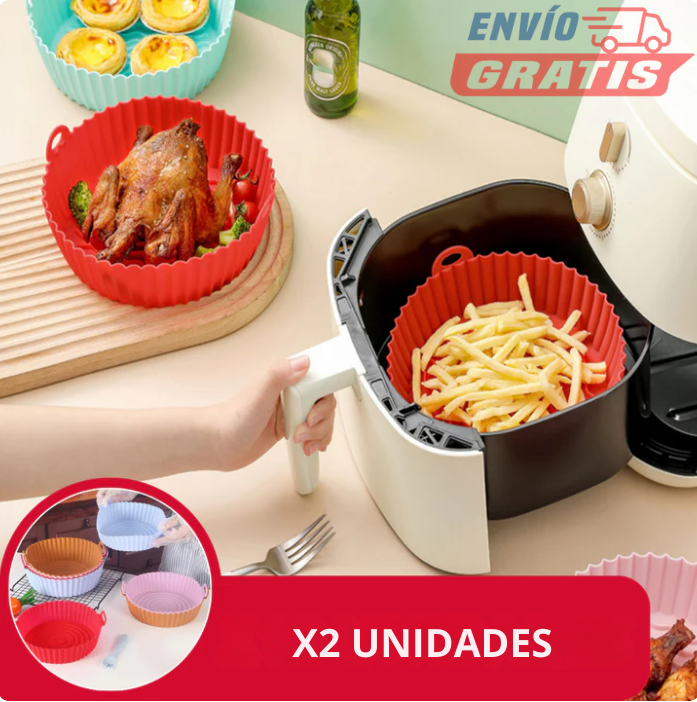Fabricada con silicona de alta calidad, libre de BPA. Soporta hasta 450 °F (230 °C) para freír, cocinar al vapor y hornear. ¡Es el accesorio más valioso para tu freidora de aire! 💪