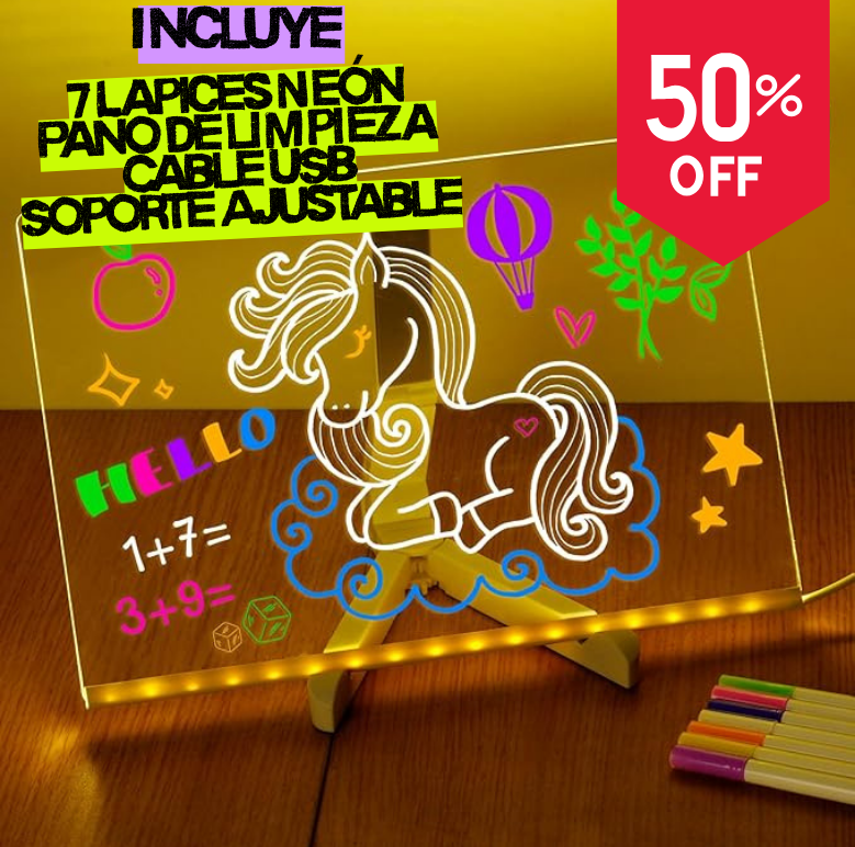 Sorprende a los más pequeños con un regalo diferente: una pizarra iluminada donde pueden dibujar, jugar y dejar volar su imaginación en mil colores 🧠. Perfecta para que los niños exploren su lado artístico, creen mensajes entretenidos y decoren su pieza con luz propia. ¡Es mucho más divertida que las pantallas!🎨